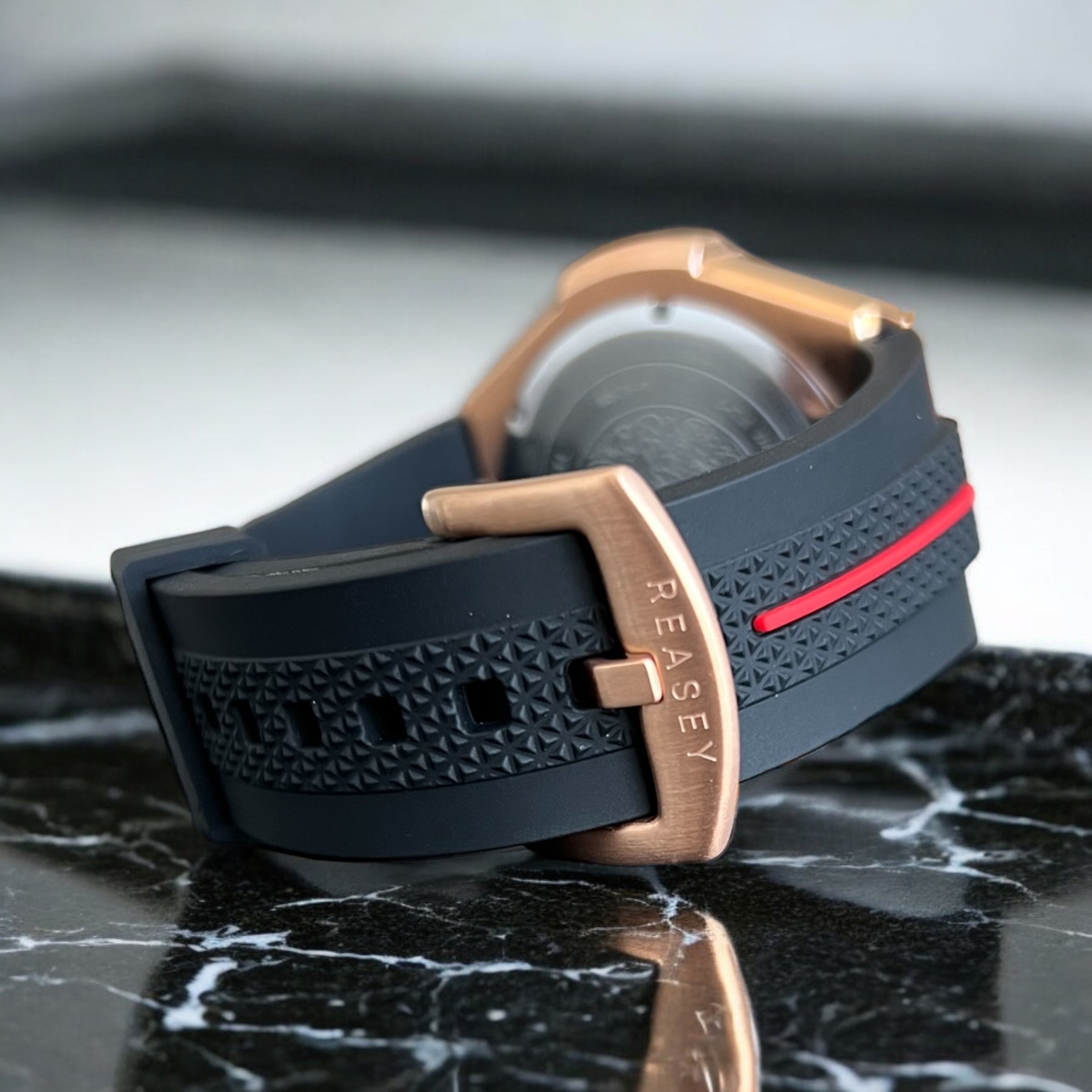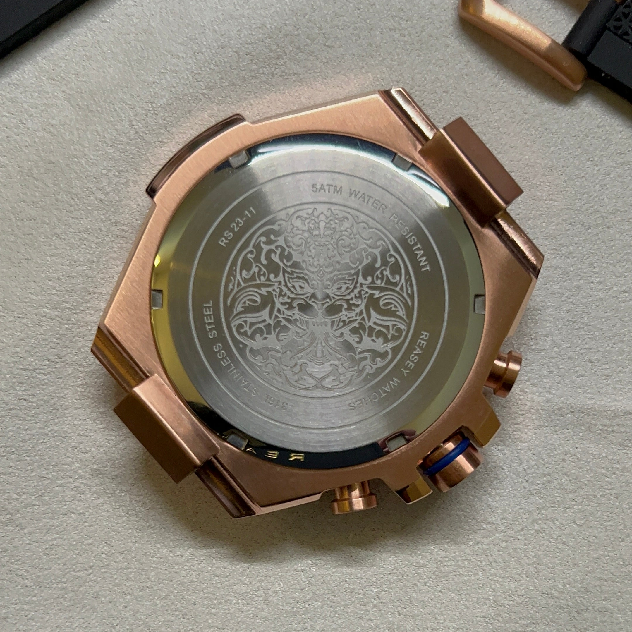 Features an Engraved Stainless Steel Case Back displaying an Art Piece by the renowned artist Théo Vallier along with REASEY branding.